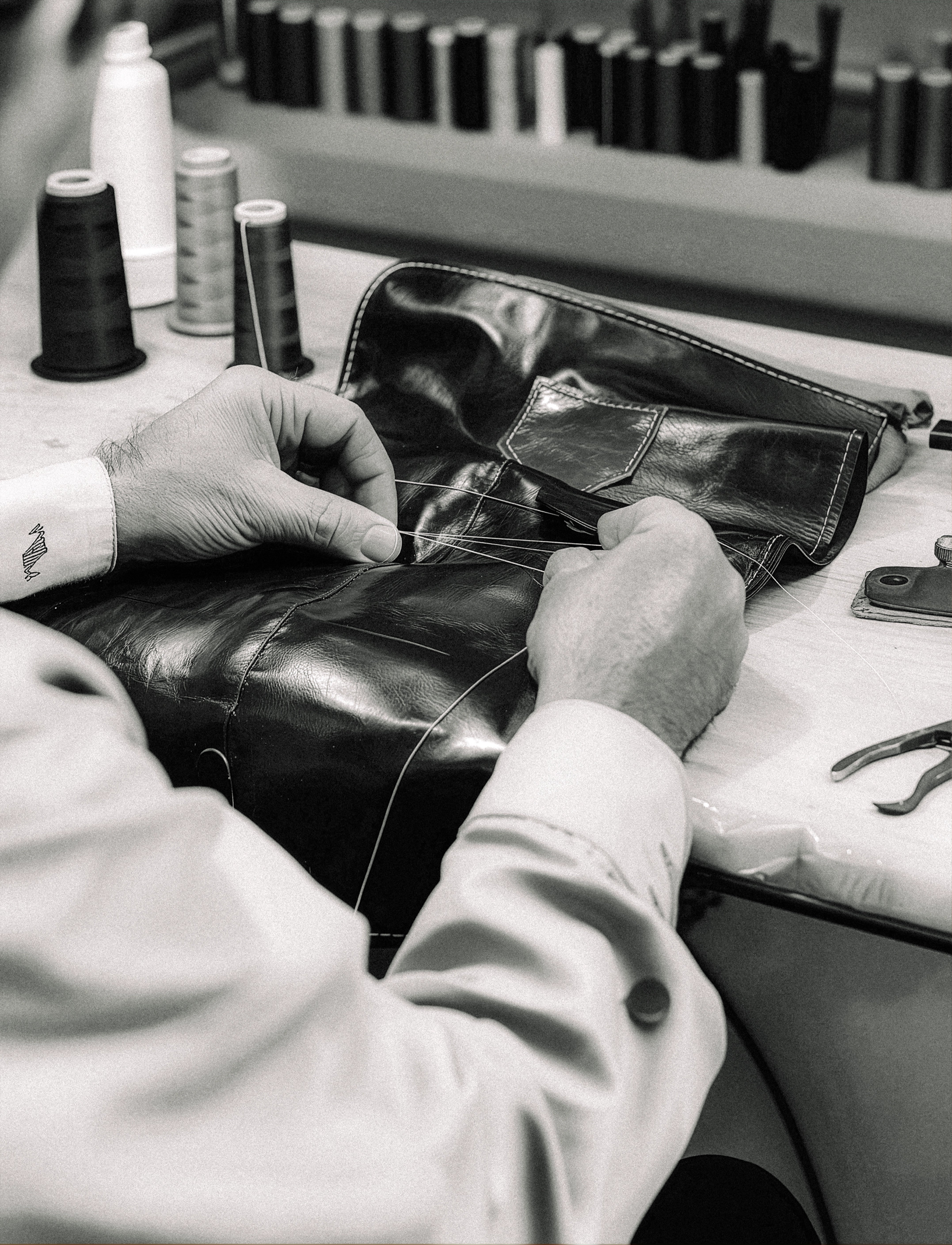 The Montenaro mark is the signature of excellence in leather, telling the story of the many artisanal skills behind every product. At every step, we choose the path of quality, crafting slowly and with intent.